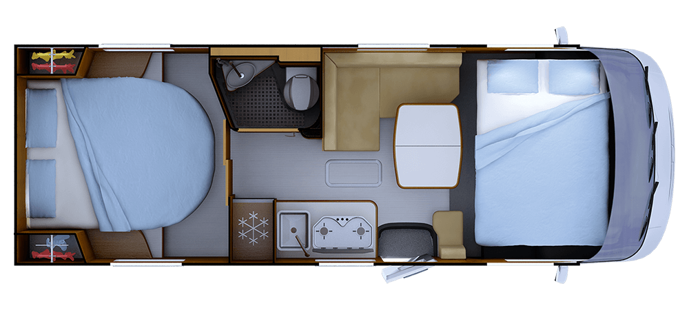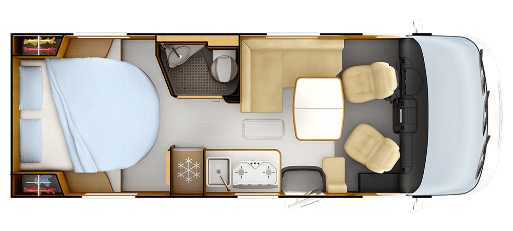 * 2+1 With option of no cab bed **Seats with seatbelts; for registered seats, please refer to the technical manual. ***TRUMA Combi 6 iNet X