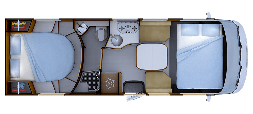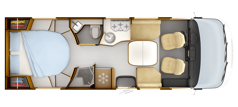 * 2 With option of no cab bed **Seats with seatbelts; for registered seats, please refer to the technical manual. ***Truma Combi 6 CP PLUS